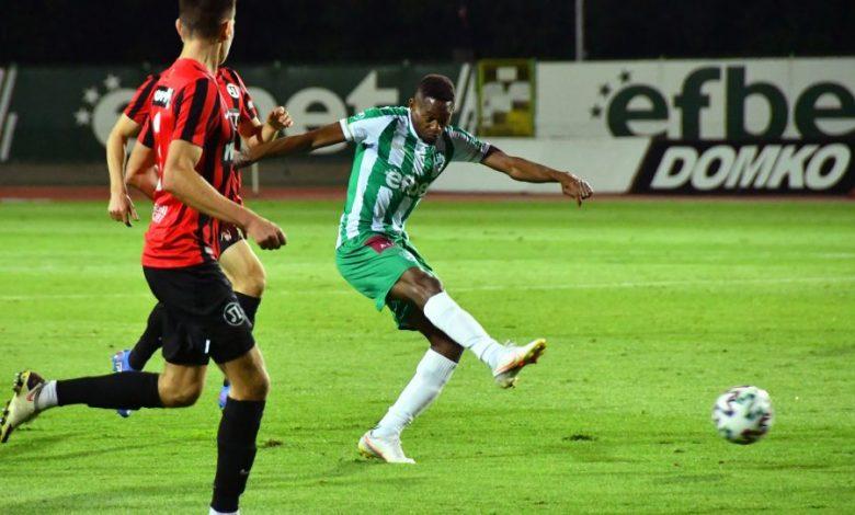 В 21. минута гостите изпълниха корнер, но „зелено-белите“ откраднаха топката и Юсеин пусна извеждащ пас към Лебон. Французинът пробяга половината терен и се озова сам срещу Рейдър, който обаче отрази изстрела и топката излезе в ъглов удар.