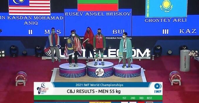 България започна с бронз в двубоя  представянето си на световното първенство по вдигане на тежести за мъже и жени в Ташкент. В първия ден от шампионата, при най-леките в кат. 55 Ангел Русев се нареди трети с общ резултат 254 кг, като към това добави злато в изтласкването със 144 кг.