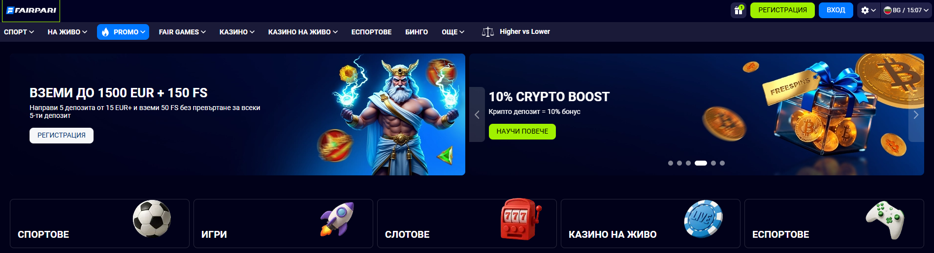 FairPari е модерна и надеждна betting и казино платформа, която предлага богат избор от игри, спортни пазари и бонуси. Платформата е подходяща както за начинаещи, така и за опитни играчи.